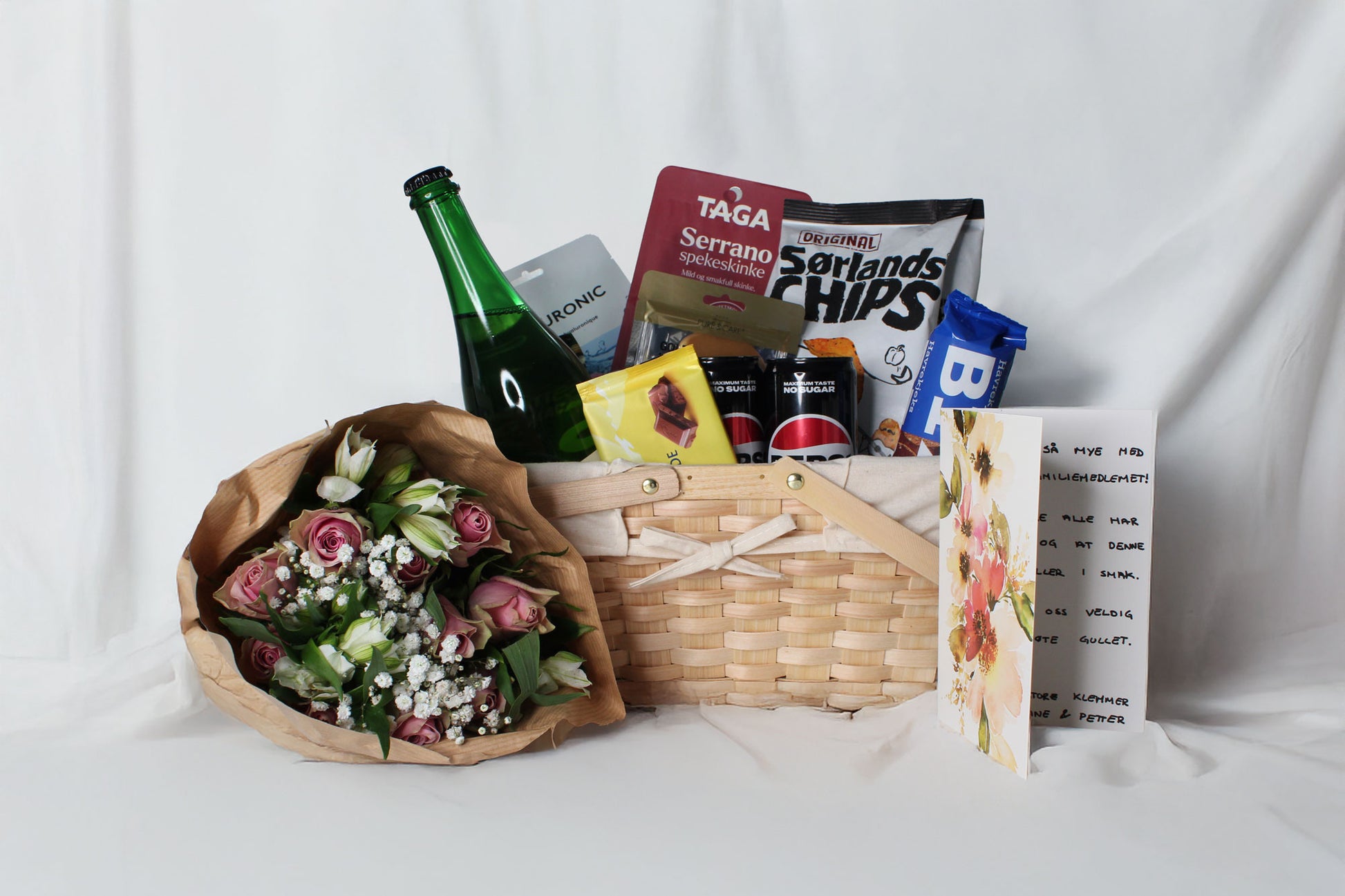 Barselgaven Premium er den perfekte gave du gir til den nybakte moren, enten direkte på barselhotellet - eller de første dagene etter hjemkomsten. Pakken inkluderer alt i Original pakke, pluss blomster og Blaane Eplemost for å legge til det lille ekstra.